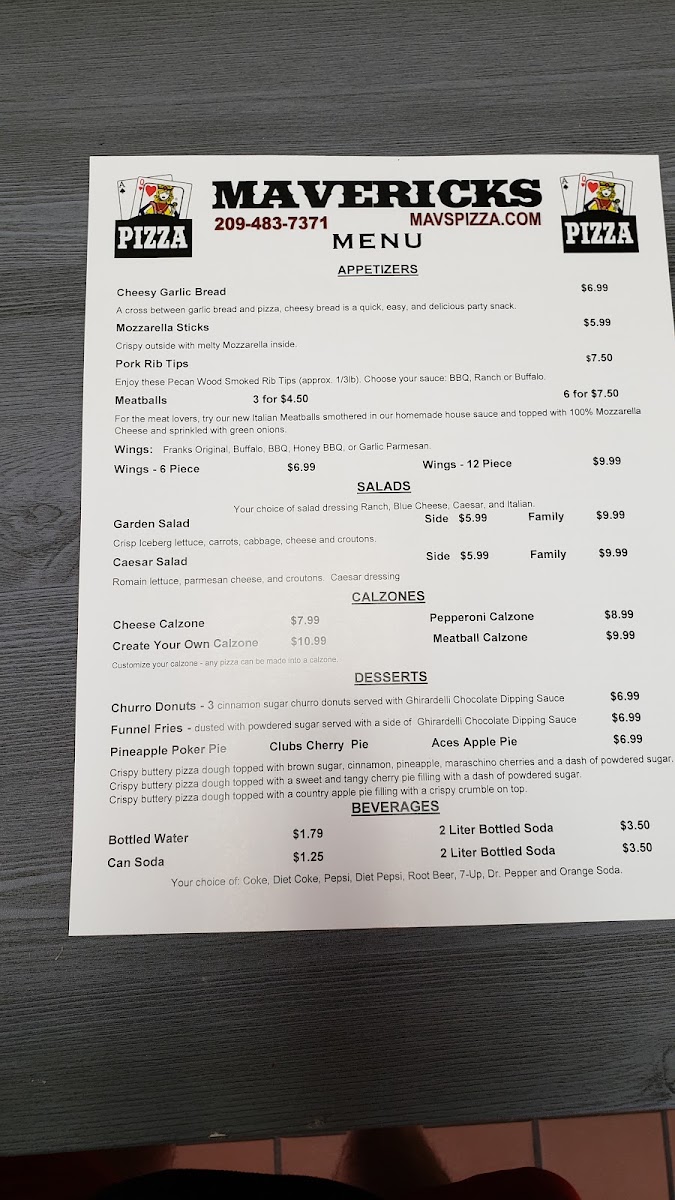Whether you're in the mood for a classic pizza, something more adventurous, or just a tasty side to go with your meal, Mavericks Pizza has something for everyone. With its combination of customizations and specialty offerings, the menu is designed to satisfy all appetites and cravings.